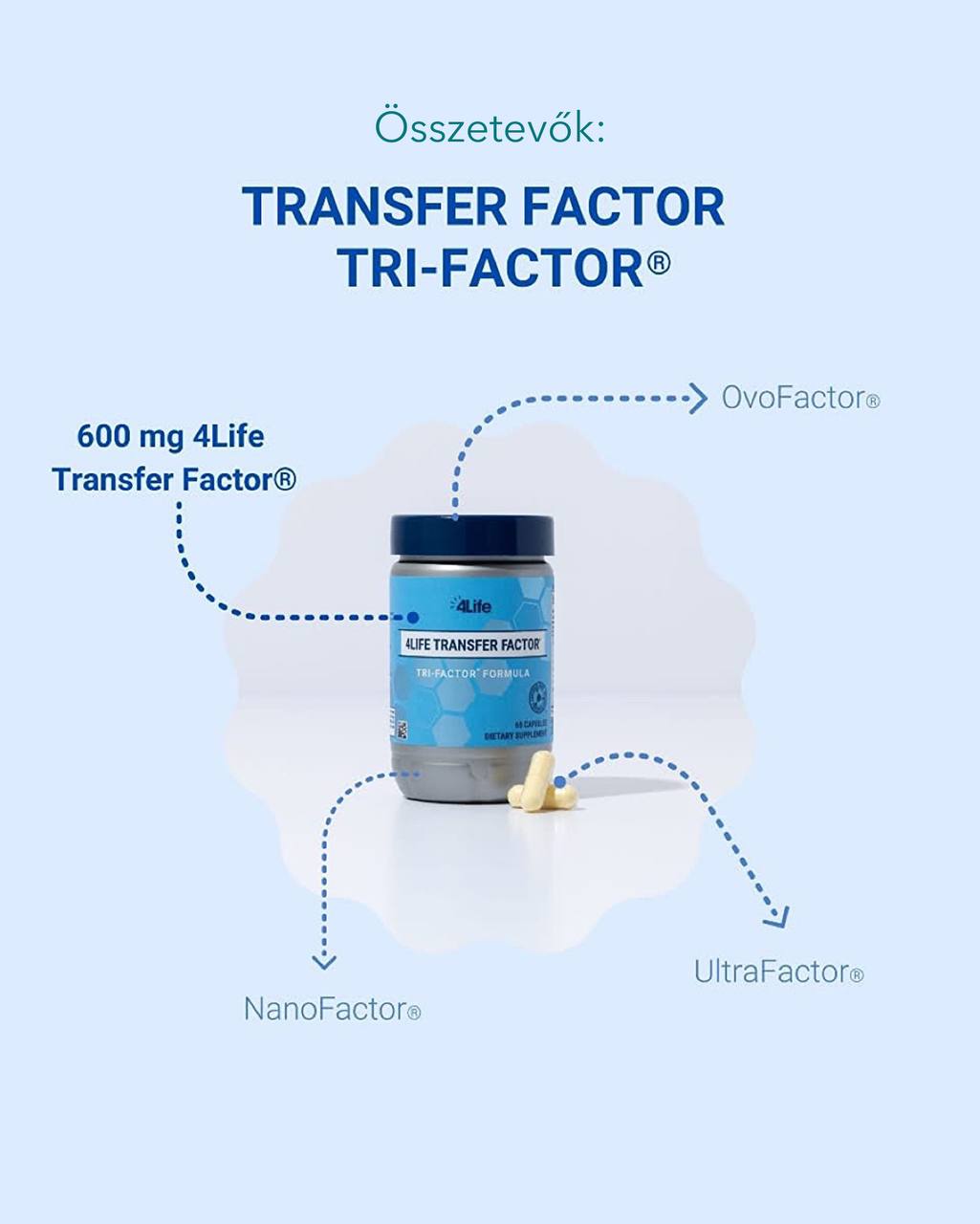 A Tri-Factor egy speciális peptidszerű molekulakomplex, amely az ún. transfer faktorokat tartalmazza – ezek kis méretű, információt hordozó molekulák, amelyeket először az 1940-es években fedeztek fel, aztán a 4Life cég továbbfejlesztette ezt a felfedezést, és létrehozott egy egyedülálló formulát, amely három fő forrásból származik: