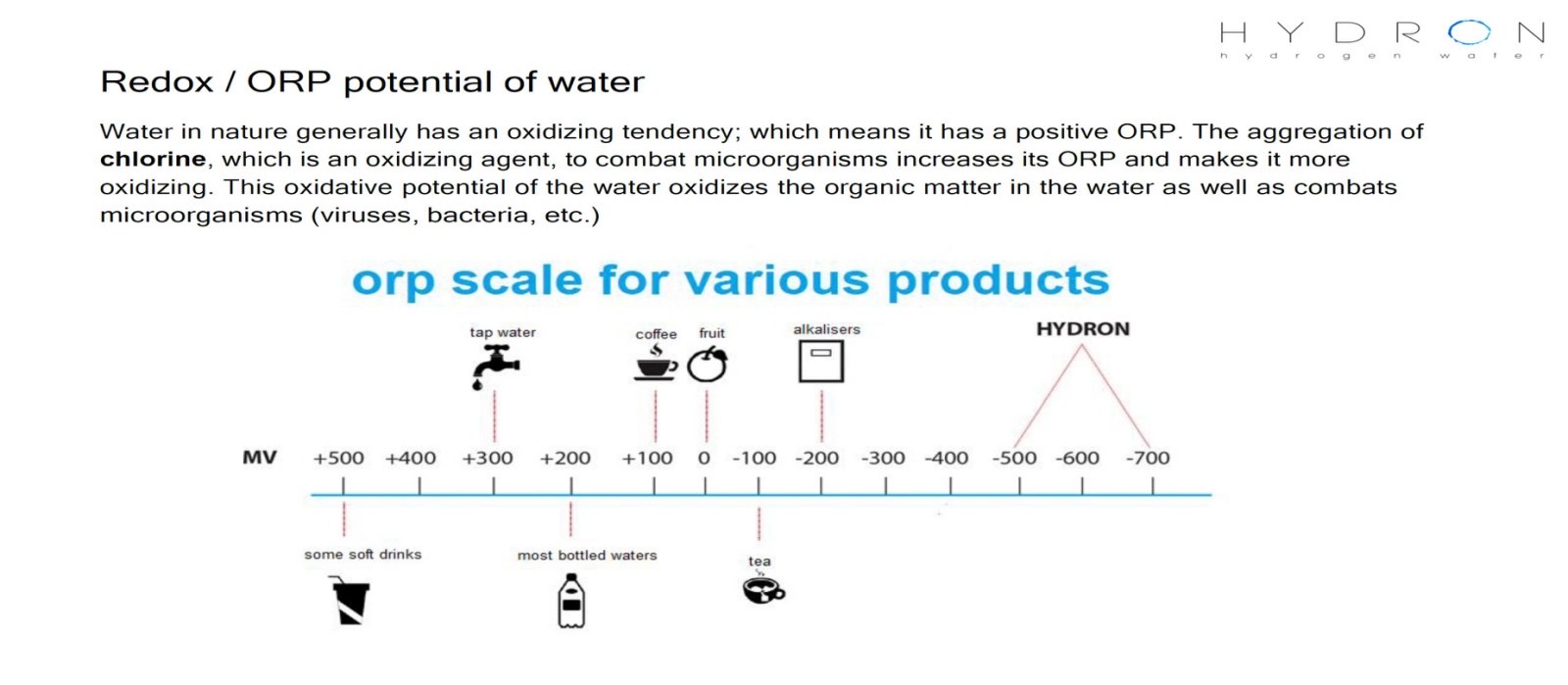 Az alábbi ábrán látható, hogy a HYDRON készülékkel előállított hidrogénes víznek mekkora az oxidációt csökkentő természetes ereje: