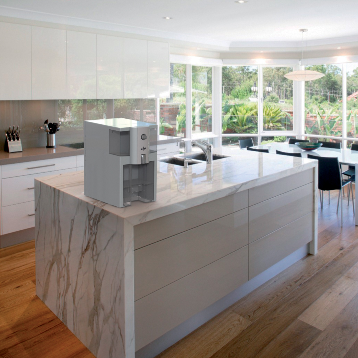 Tetszetős kialakítása lehetővé teszi, hogy ez az asztali víztisztító vízhálózat nélküli irodákban, helyiségekben elhelyezhető legyen.